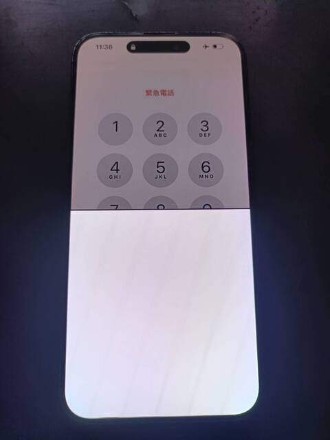 こちらは以前ご相談頂き、お預かりしたiPhone15ProMaxです。落とした影響で画面の半分がホワイトアウトしてしまい見えなくなってしまったとの事です。操作はできるようで白い部分のタッチ・スワイプも反応するようですが、見えないのでアプリを起動させるにも運試しですし、起動させたところで下半分は読めませんし見えません。非常にお困りとの事で、画面の修理をご依頼頂きました。
