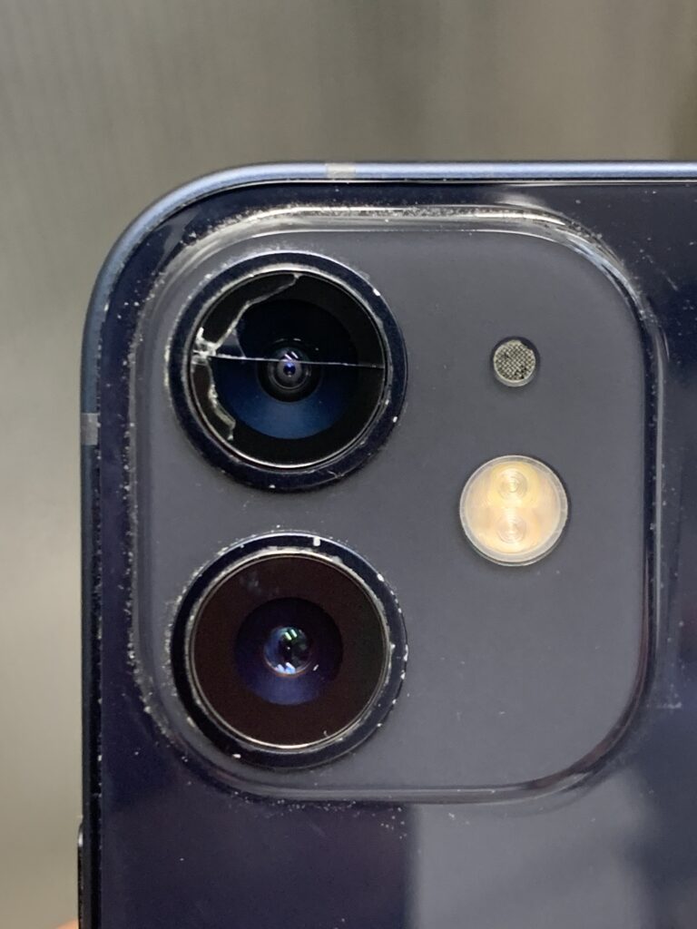 こちらのiPhone、カメラレンズの上が割れてしまっていますね。