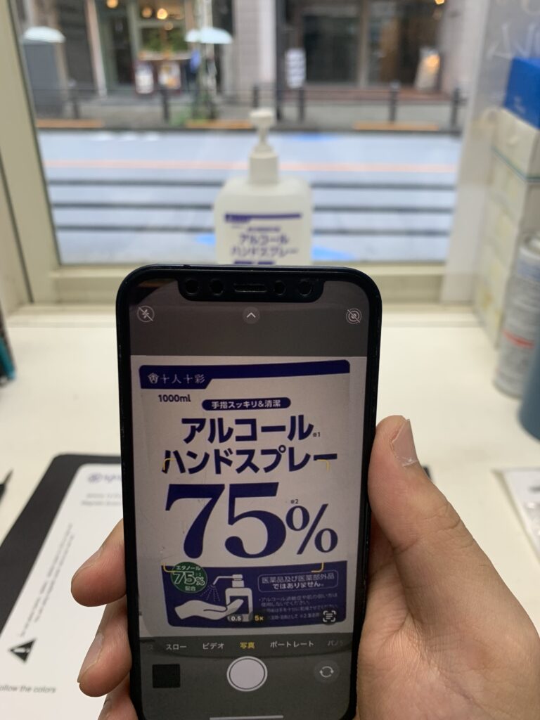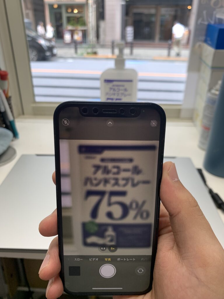 アルコールスプレーを被写体にしたこちらのiPhone、文字がぼやけてしまっていますね。