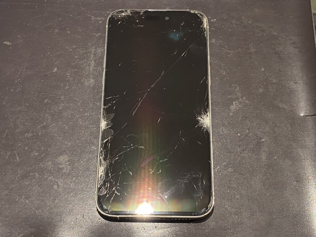 こちらのiPhone、お分かりのように画面全体が割れて蜘蛛の巣状になっている箇所もいくつか見られます。
